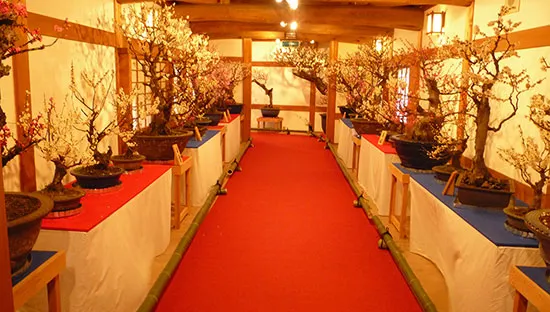 Held every year from February to early March at the historic site of Koriyama Castle. Approximately 120 bowls of bon plums and weeping plums raised by local enthusiasts are displayed indoors and outdoors, creating a memorable scenery with a strict castle space and fragrant plum blossoms.