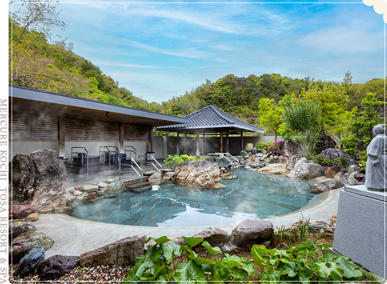 이고치 현적 명승 가쓰라하마 와무로 곶 위주제 형성적 충만 개방감적 노천온천리, 건유여 토사 유저 심연원적 사카모토 류마상 와나카오카 신타로상.청재 자가 원천적 YOSAKOI천중도 과신심도득 쇄도유적 시광