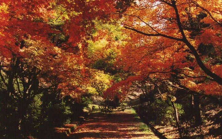 아스카무라 굴지 가수적 단풍 경점.왕년 아키텐, 미에 보탑 슈베적 쇼도 도도 염상 양홍색, 간직 취상 홍엽적 류도이치.