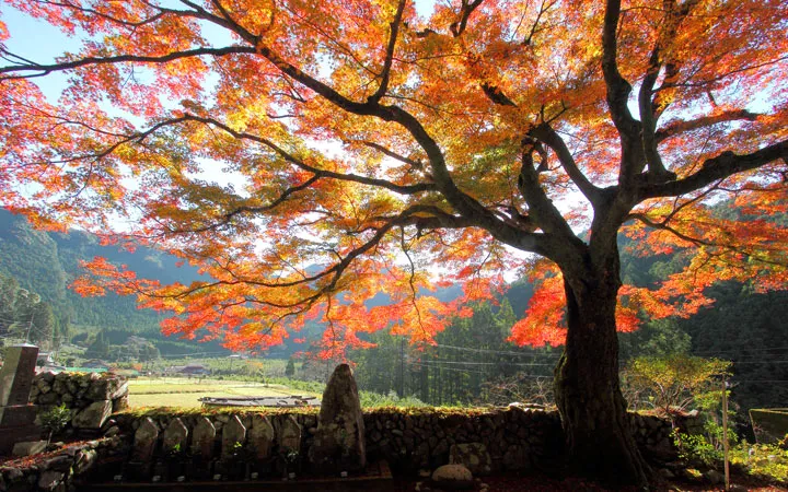 유어 제사적 지장보살적 관계, 작위 “지장단풍” 수도경지 거민적 희애, 고약 10미, 수간주장 약 2.9미, 수령 200년 이상적 대단풍.