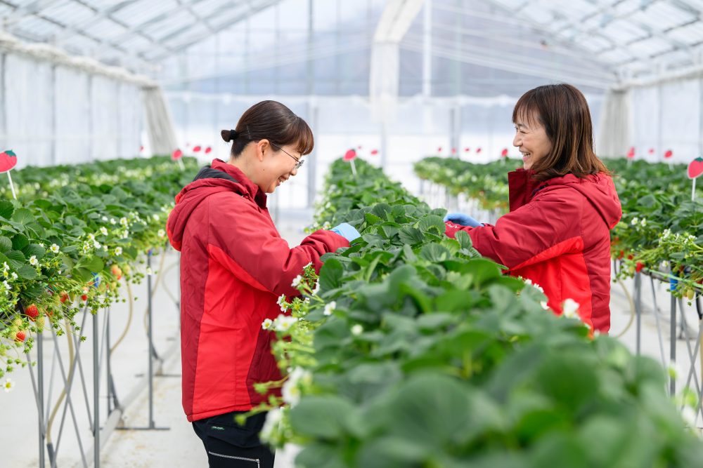 另外,因为导入了高设栽培,所以可以不用弯腰,以轻松的姿势享受摘草莓的乐趣。在寒冷天气还在持续的早春,在温暖的塑料大棚中也有卖能享受摘草莓的实惠住宿计划。