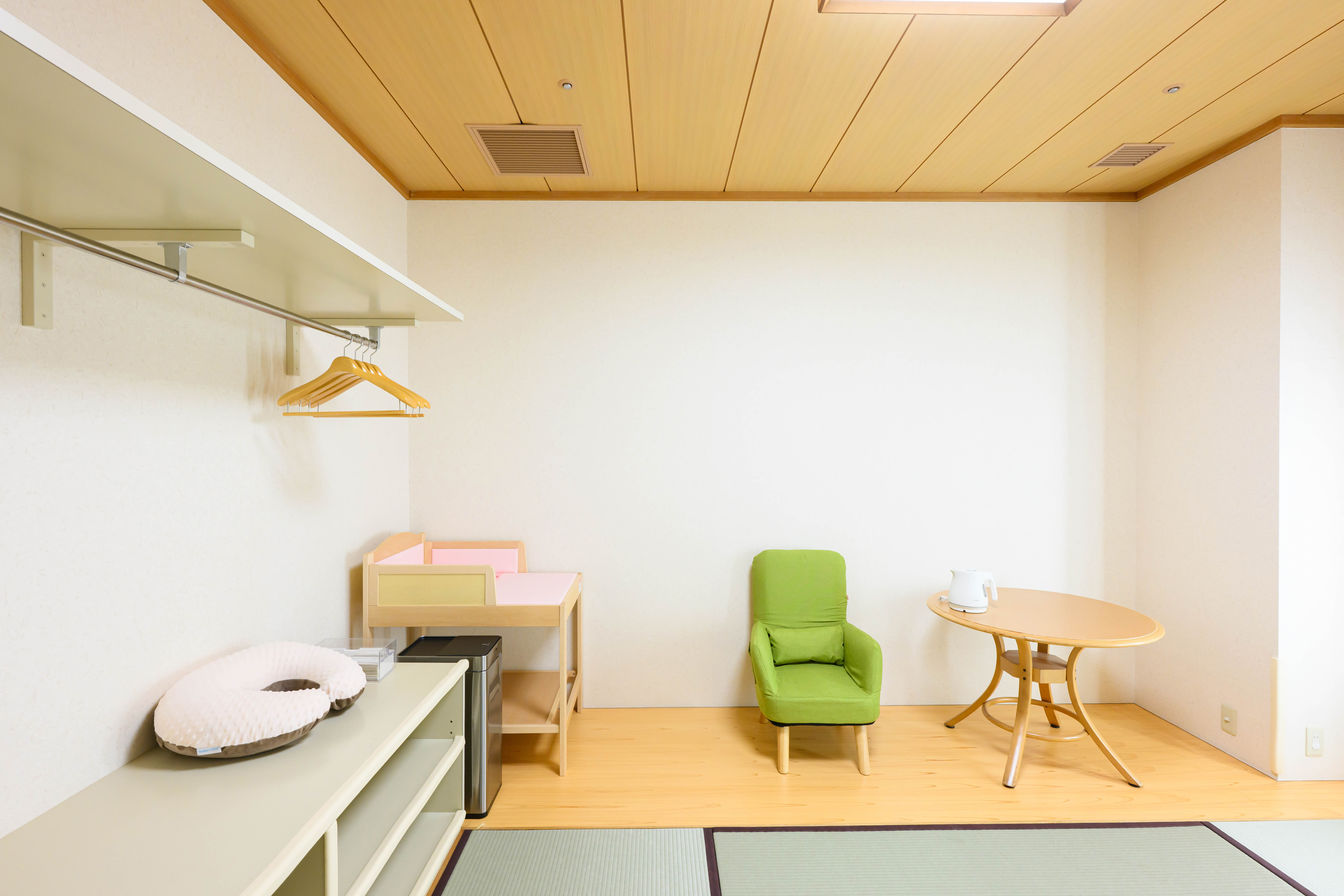 36平米宽敞舒适的客房禁止穿鞋。室内的地板在地毯上铺着地毯和垫子,所以不用担心开始跳高或走路的婴儿摔倒或受伤,可以安心、舒适地度过。