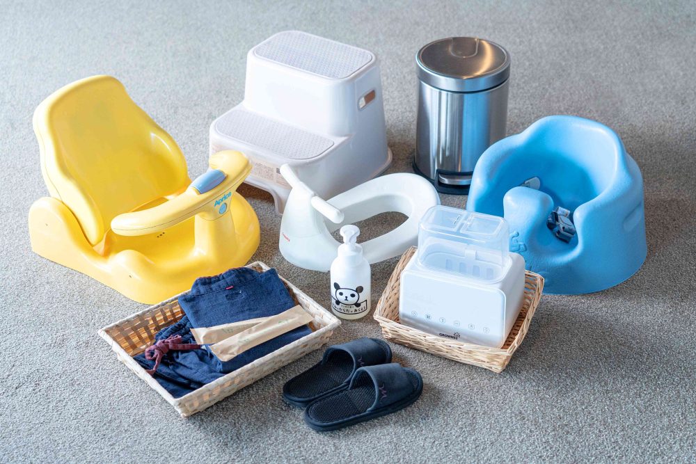 客房设有2张单人床和1张婴儿床,单人床还设有床保护,有同床的孩子的家庭也可以安心地睡觉。除此之外,还准备了婴儿沙发、巴士椅子、台阶、辅助座便器等,婴儿就像在家里一样放松地度过,另外爸爸妈妈还准备了可以安心照顾的项目,为舒适的旅行提供支持。
