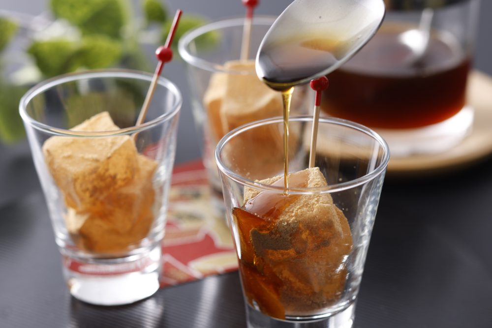 使用香喷喷喷烘焙的土佐糖果茶粉,为光滑的布丁增添了丰富的香味。每次含在嘴里时,有深度的烘焙香就会慢慢扩散开来。