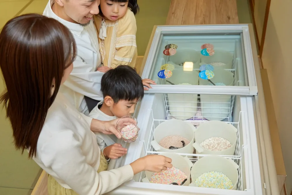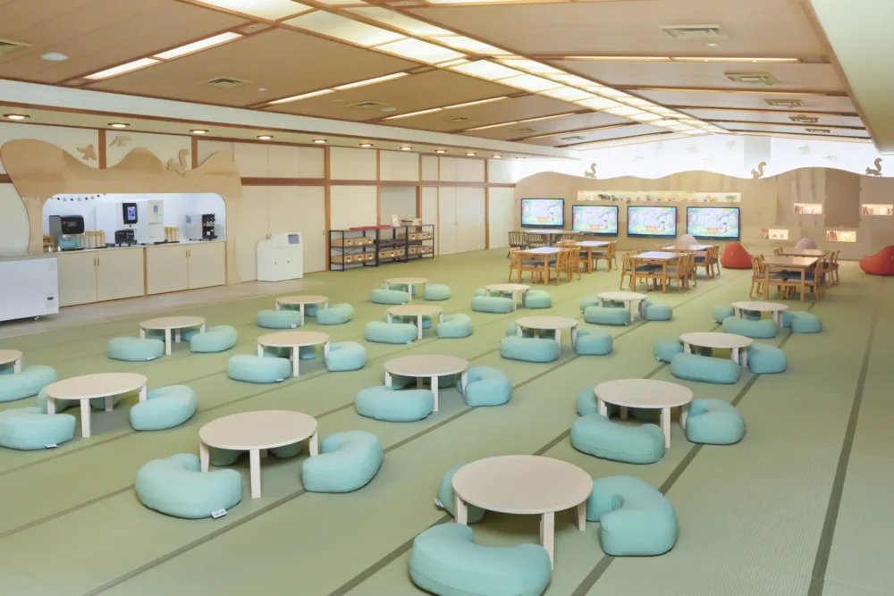 新设的休息室是树木和榻榻米温暖的空间,是一个亲子三代都能享受“阅读、玩耍、放松”的多功能休息室。除了汇集了绘本、儿童书、自然、旅行、地域相关的书籍等亲子一起享受的广泛种类的书籍的读书空间之外,还具备了约3000册漫画并列的漫画角等藏书功能。在准备了能感受到树木温暖的玩具、和家人一起享受的智育卡、棋盘游戏的区域,可以体验促进乳幼儿期五感成长的游戏。另外,在使用大型监视器的“数字绘画工作室”中,AI可以用自动声音解说画面上自由描绘的画等,享受欢欣雀跃的体验。此外,还设有饮料酒吧、啤酒服务器、可以根据自己的喜好定制“Dipindts Is”的甜品柜台。实现不仅是孩子,大人也能舒适度过的滞留型家庭空间。