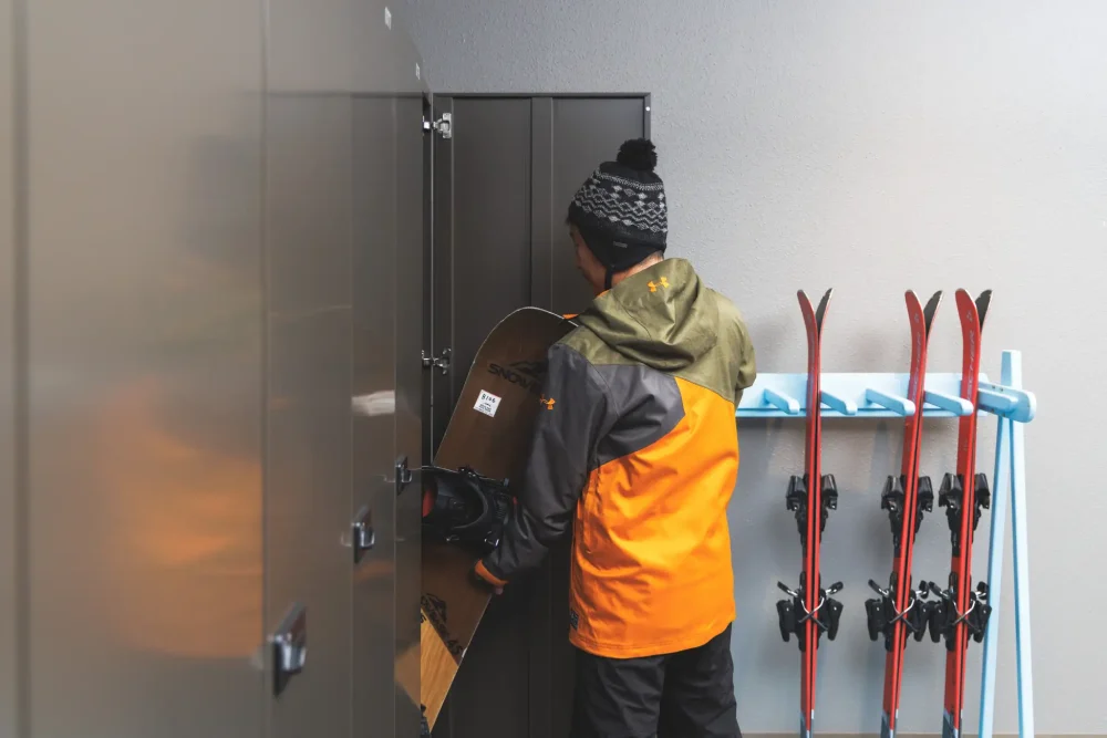 持有自己的滑雪板的客人可以在馆内的专用架子或储物柜空间放心保管。另外,作为滑行后可以使用的服务,可以在前台免费租借靴吹风机和温暖脚下的足浴器。将湿靴子好好干燥,在雪山温暖冰凉的脚尖,减轻疲劳,第二天也能以万全的状态享受滑行。