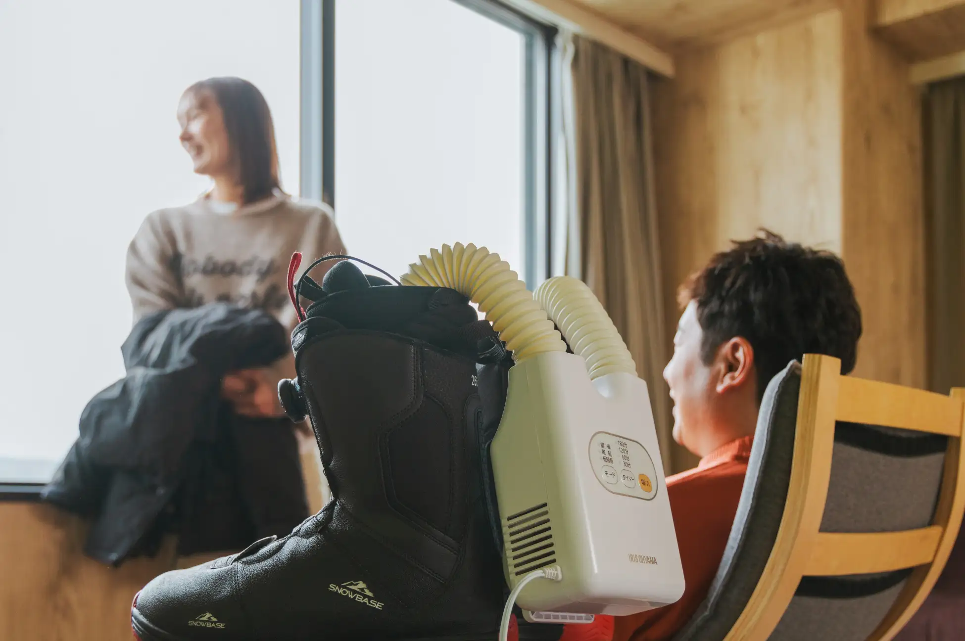 持有自己的滑雪板的客人可以在馆内的专用架子或储物柜空间放心保管。另外,作为滑行后可以使用的服务,可以在前台免费租借靴吹风机和温暖脚下的足浴器。将湿靴子好好干燥,在雪山温暖冰凉的脚尖,减轻疲劳,第二天也能以万全的状态享受滑行。