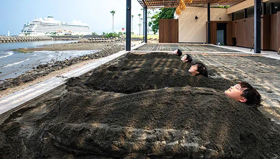 A large open-air hot spring located in Kawasato. Shuroku, the capital city point Ryo “Steer Light”, a dream-like landscape exhibition. In a natural environment-like bath, a hot spring under the body starry sky