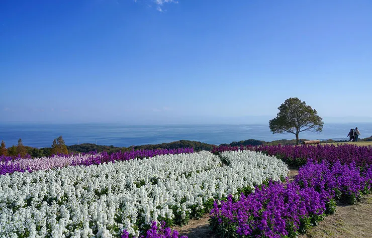 아와지시마 남부, 무코대해 낙하적 파상 성개 저 약 500만주 야생 수선화.종산보도화 전망 갑판상, 도과료 여향미 일기감수 동계쇄도적 시광