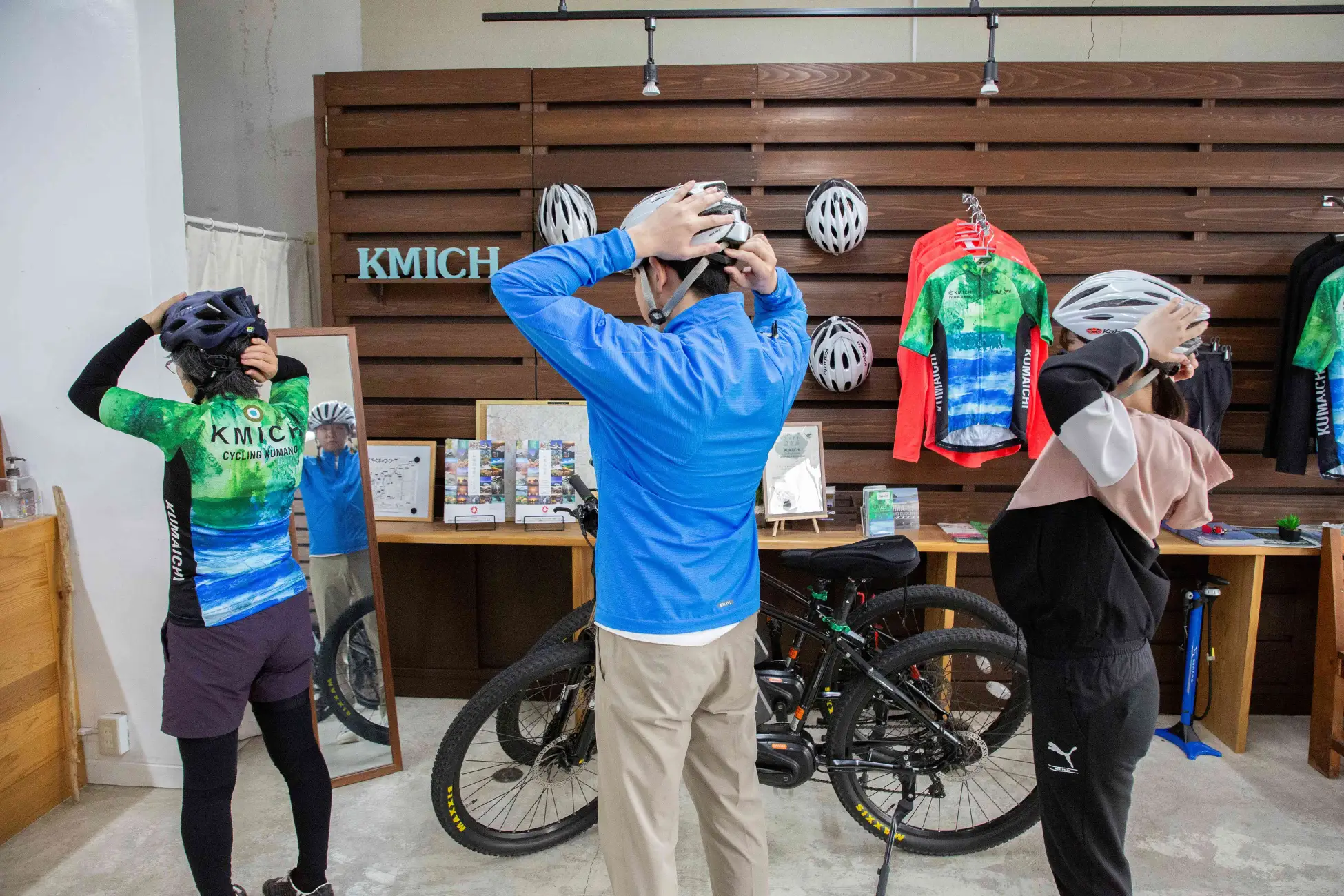 Enchanted by the scenery and cycling environment of Kamitomita, the cycle station "KMICH" has been operated since 2020. We are actively working to spread the cycling course "Kumaichi" that goes around Kumano. In addition, we have introduced rental of mountain bikes with electric assists (e-bikes) for those who are not confident in their physical strength or want women to enjoy cycling casually.