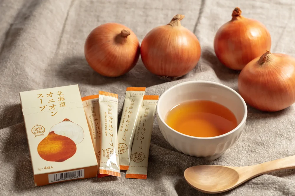 The soup is used onion from the Kitami region of Hokkaido, which boasts the highest production volume in Japan. Kitami onions, which grew up in an environment with long sunshine hours and varying temperature, are characterized by strong sweetness and umami. The onion soup, which is tightly condensed with its deliciousness, warms the cold body from the inside through sightseeing and snow festival tours, and allows you to feel the richness of Hokkaido's food.