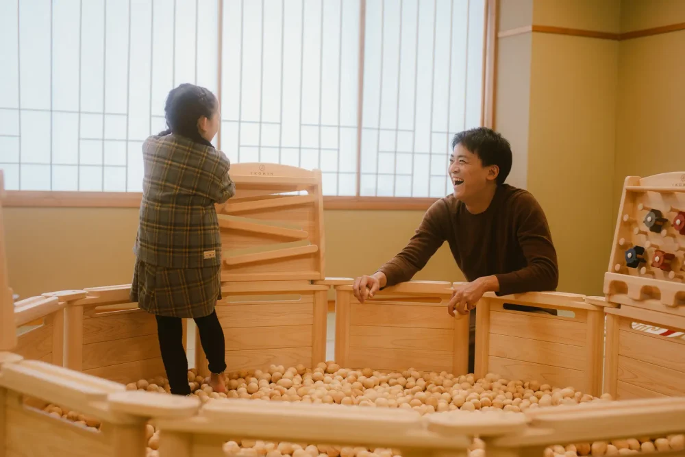 The wooden ball pool with plenty of cypress balls and the "Activities Room" with wooden balance boards are recommended for children who want to move their bodies well.