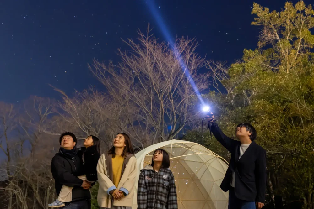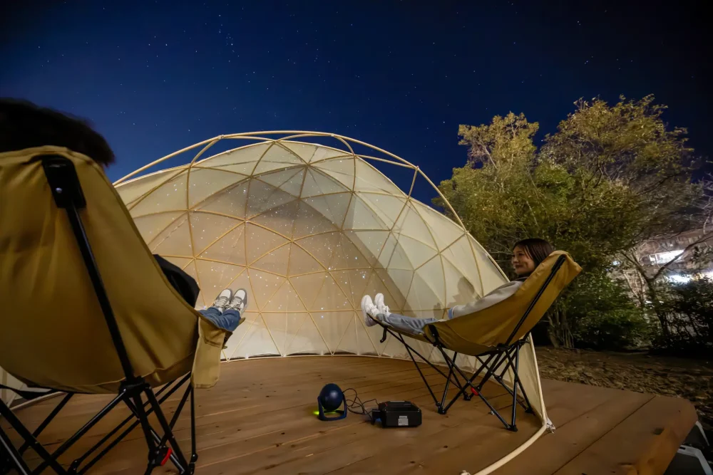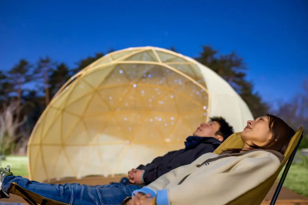 We aim to improve the value of our stay by providing items to look up at the night sky and relax while watching the stars, a planetarium to enjoy in the dome tent, and a meteor shower viewing party with star specialists.