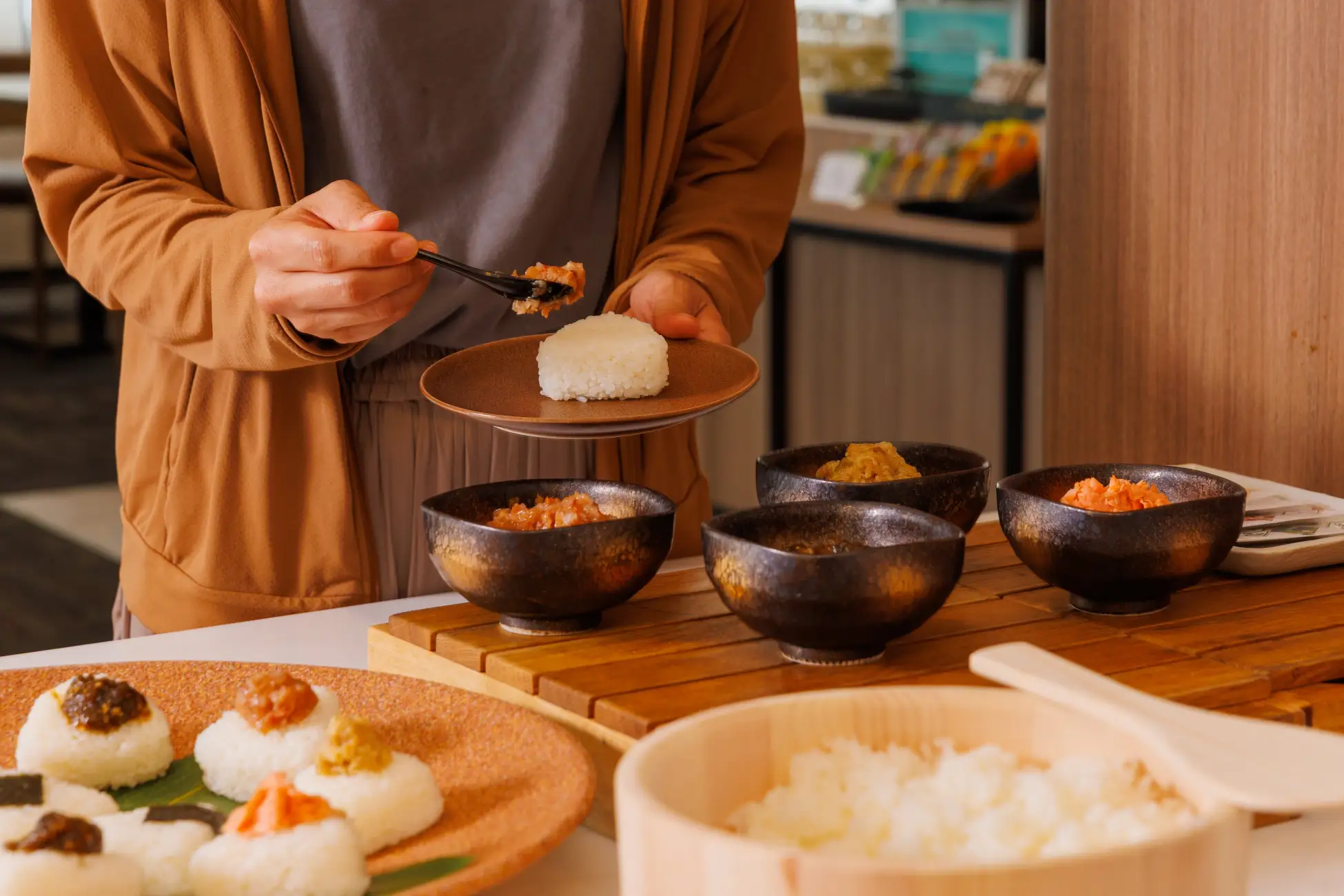 In connection with the season when the relationship with the gods is connected, the breakfast buffet offers "Omusubi" using fresh rice from the local Tottori. In the live kitchen, the chef will hold a salted rice scoop on the spot. There are 5 types of toppings unique to this area. You can enjoy the "deliciousness of new rice" offered on a monthly basis, and the delicious taste of simple toppings that enhance the umami of rice.