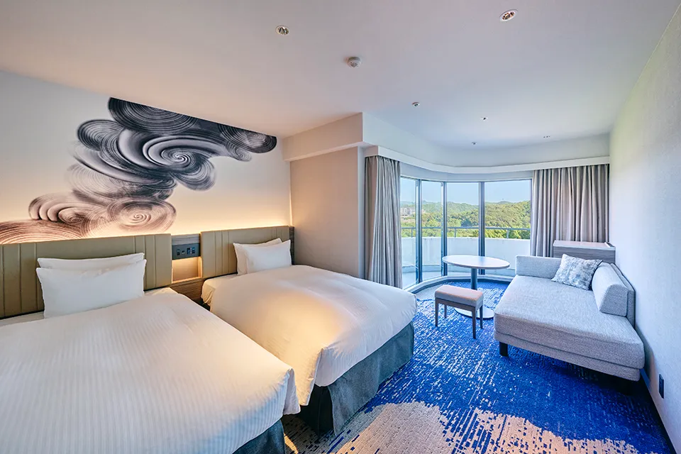 재온천 화대욕 극장 유후지치유후, 재온천휴식실 일엽 향유료이치 흠집.