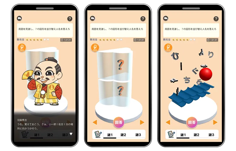 걸으면서 수수께끼를 풀고 전국의 세계에 몰입하는 체험형 수수께끼 풀기를 즐겨주세요.