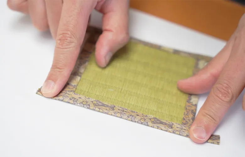 카시하라시·후쿠모토 다다미점과의 콜라보로, 다다미를 사용한 코스터 만들기 체험