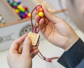 마을의 여기저기에 남는 가문 「롯문전」을 모티브로, 관영 통보의 팔찌 만들기를 체험할 수 있습니다.