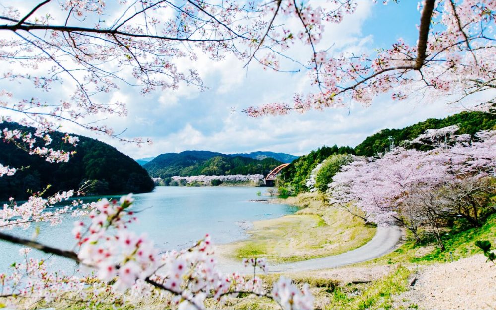 일본 사쿠라 명소 100선에 선정되고 있는, 후루자와초 “나나가와 댐 호반의 벚꽃”【사진 제공:고자가와초 관광 협회】
