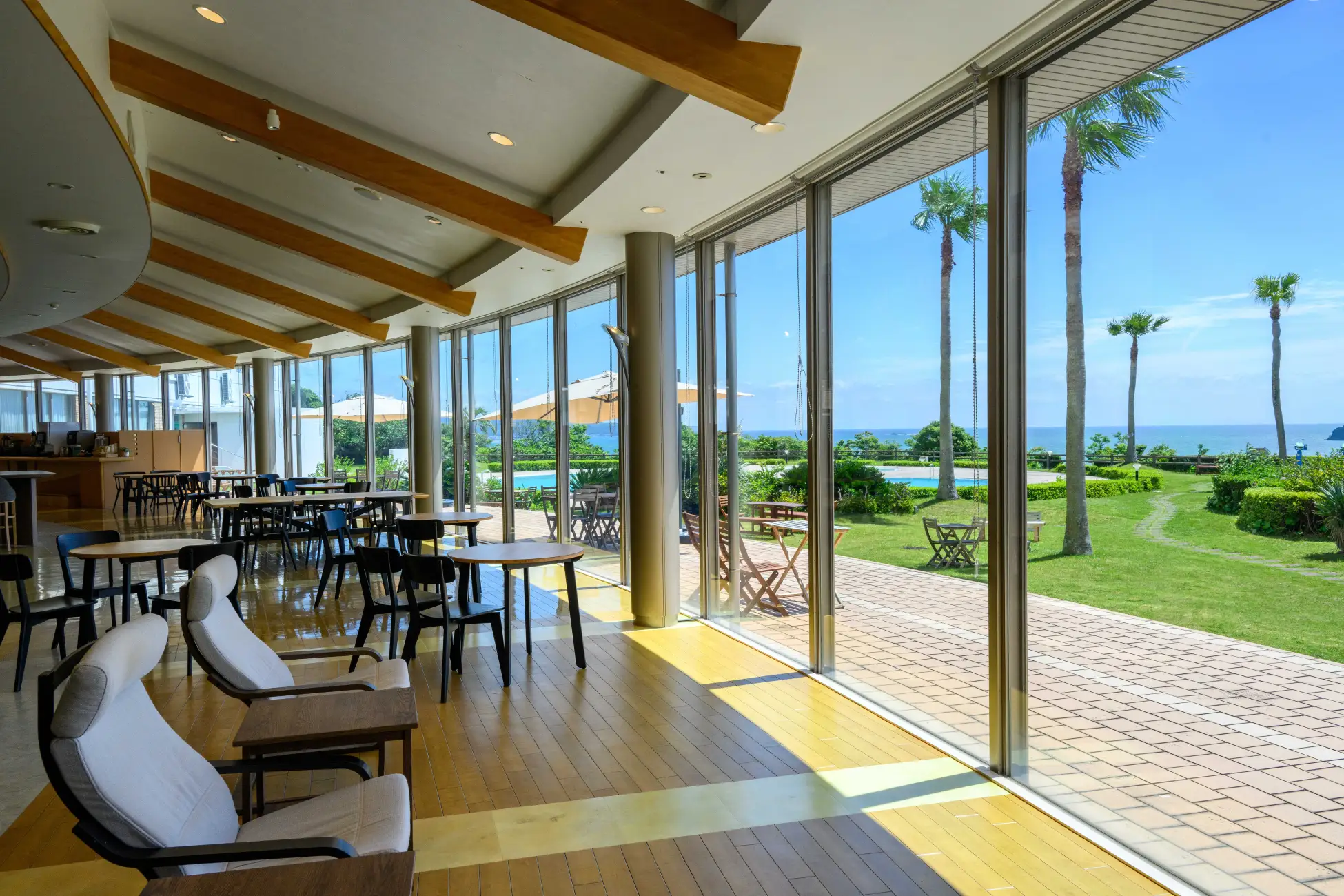 - 큰 창에서 바다를 바라는 레스토랑에서 조석 뷔페