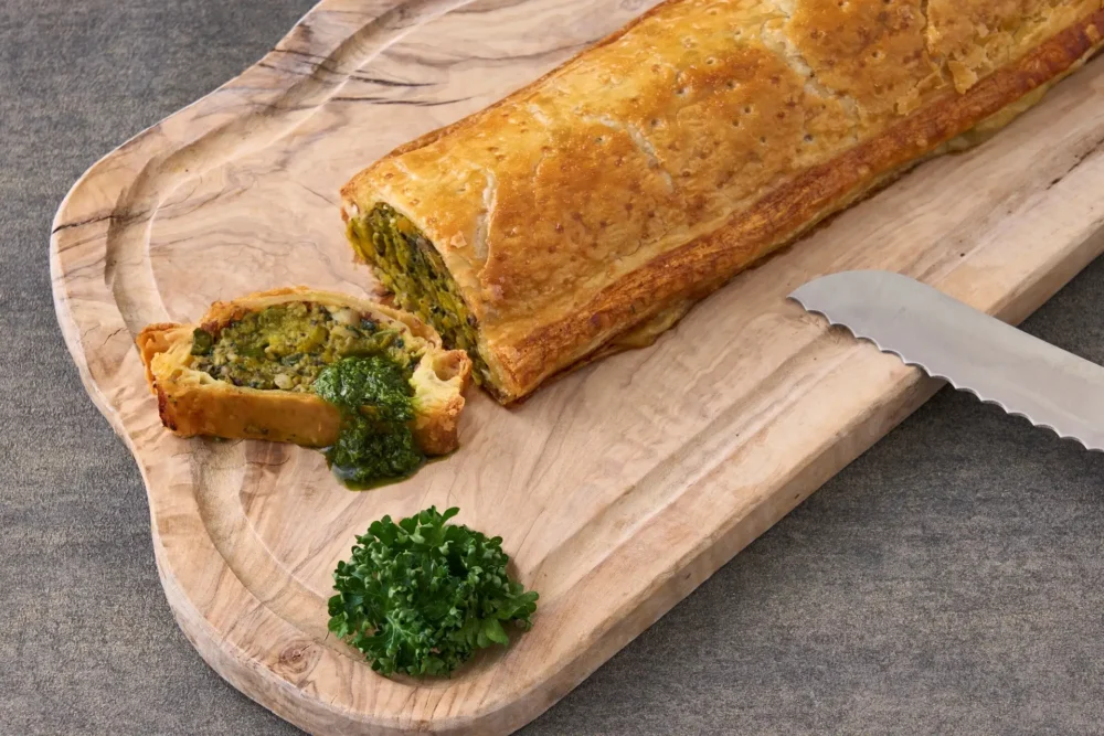 19세기에 나폴레옹을 꺾은 영웅, 영국의 웰링턴 공작에서 유래된 요리. 통상 사용되는 쇠고기 대신, 로스트한 야채와 버섯을 삭사쿠 파이로 감싸, 계절의 소스로 마무리했습니다. 야채의 단맛과 버섯의 깊은 맛이 느껴지는, 만족감이 있는 채식 메뉴입니다.