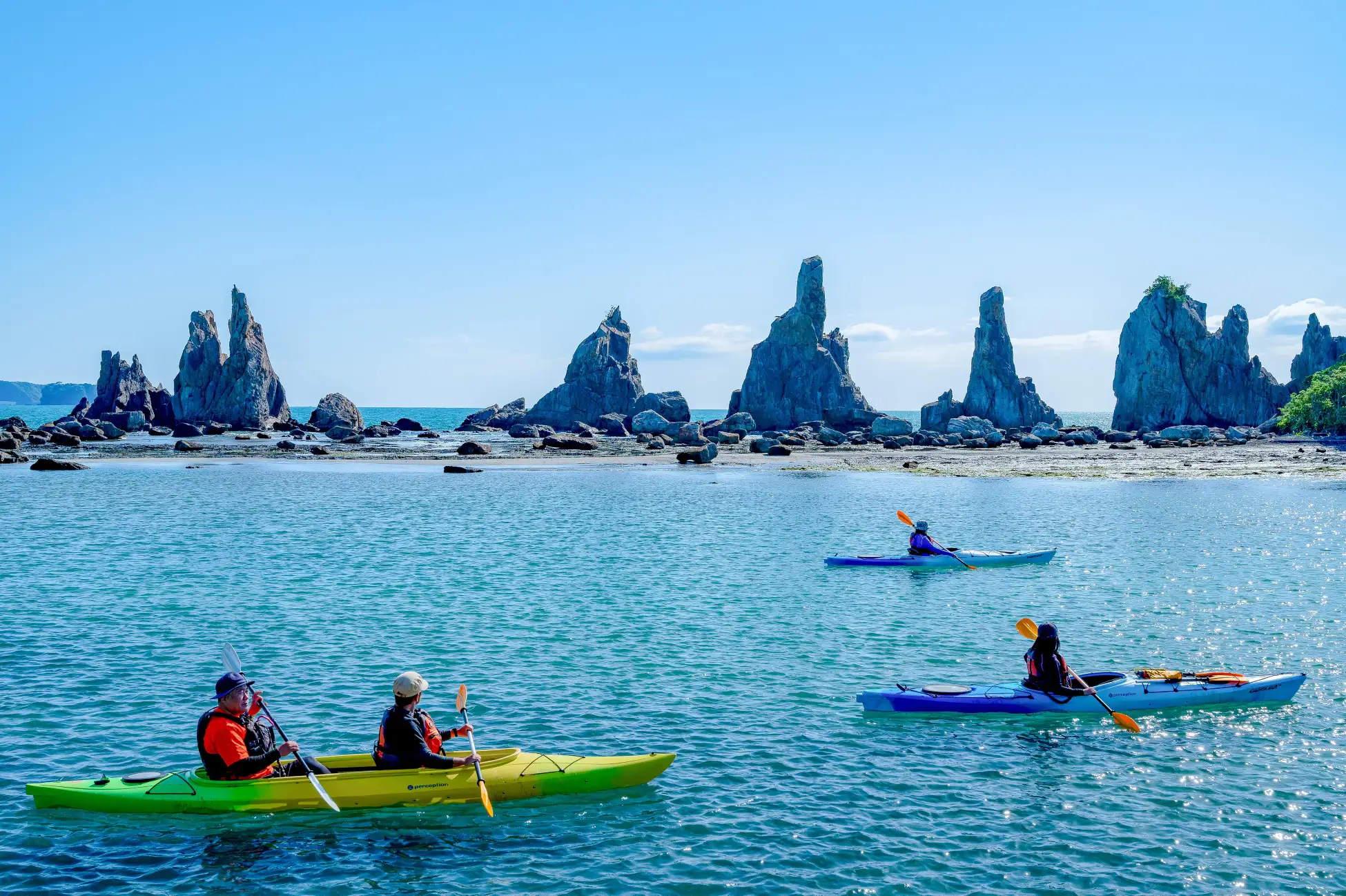 난키 구마노 지오파크는 혼슈 최남단·기이반도의 남부 지역에 있어, 와카야마현 신궁시, 시라하마초, 우에토미타초, 스사미초, 나치카츠우라초, 타이치초, 후루자와가와초, 기타야마무라, 쿠시모토초 및 나라현 토쓰가와무라의 일부의 10시정촌에 걸치는 에리어를 가리킵니다. 플레이트의 가라앉는 것에 수반해 만들어진 3종류의 대지, 그들이 만드는 독특한 경관, 온난 습윤한 기후가 가져오는 다양한 동식물, 그리고 거기에서 태어난 구마노 신앙이나 뗏목 등 수많은 뛰어난 자연과 문화를 체감할 수 있는 지역입니다.