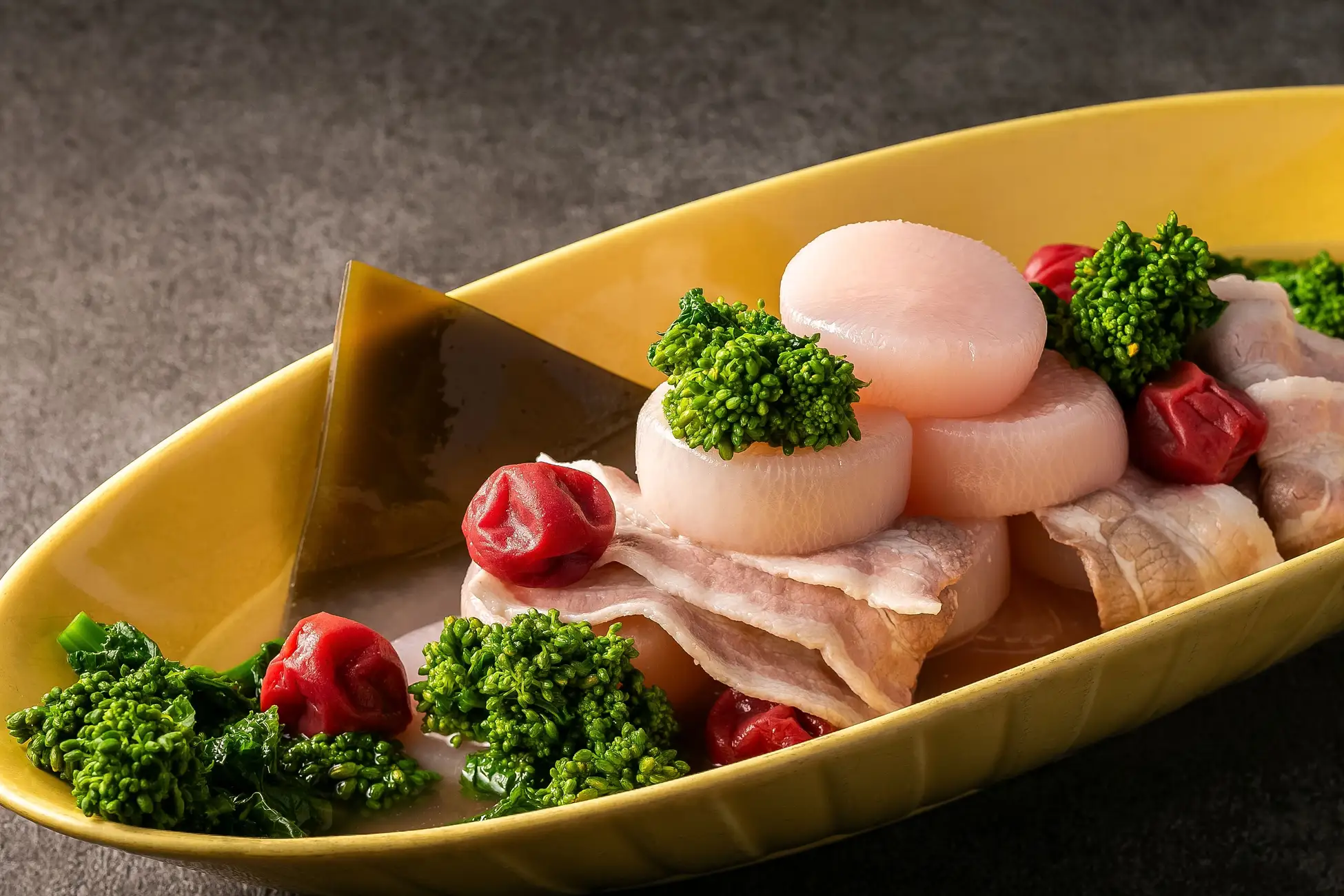 개업 2주년을 맞이한 2026년 4월 1일부터, 뷔페 레스토랑 「Le Sensoriel」에서는 Food&Beverage의 새로운 컨셉 「마르쉐」를 이미지한 시그니처 메뉴를 제공하기 시작했습니다. 무심코 발을 멈추고 싶어지는 「발견의 즐거움」, 눈앞에서 요리가 완성되는 라이브 키친의 「두근감」, 그리고 여행지 특유의 「신선한 체험」을 전달합니다. 또, 로컬 메뉴도 신메뉴가 등장해, 와카야마현과 긴키 대학이 공동으로 기른 서리 내리고 돼지고기 「구마노 포크」를 사용한 「구마노 포크와 봄 무의 매화 삶」이나, 매화의 상쾌한 신맛으로 시원하게 즐길 수 있는 카츠 버거는 호텔 추천의 일품입니다.