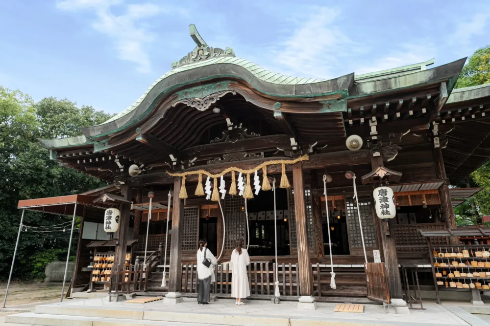 가라쓰 신사는 약 400년의 역사를 자랑해, 가라쓰성의 총진수로서 사람들에게 사랑받아 왔습니다 오제신은 스미요시 미카미와 간다 소지공으로, 항해 안전이나 장사 번성, 개운 초복의 이익이 있다고 전해지고 있습니다. 매년 가을에 행해지는 「가라쓰 군치」는 나라의 중요 무형 민속 문화재로 지정되어 히키야마가 시내를 둘러싼 용장한 모습은 필견입니다. 바다와 함께 번창한 가라쓰의 상징적인 신사이며, 지역 사람들의 신앙을 지금에 전하는 개운과 번영을 바라는 회사입니다.