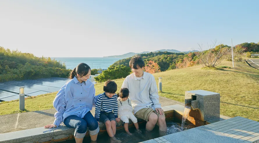 千里浜温泉の湯を引いた足湯で、海と夕日を眺めながら心身ともに癒やされるひとときをお過ごしいただけます。
