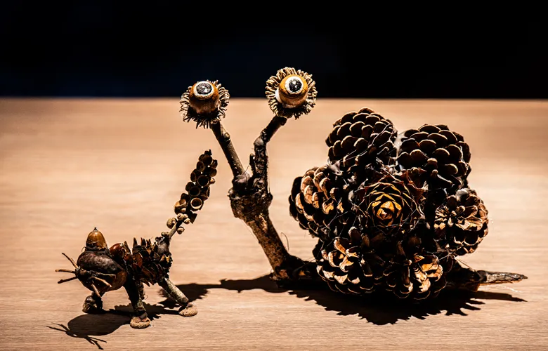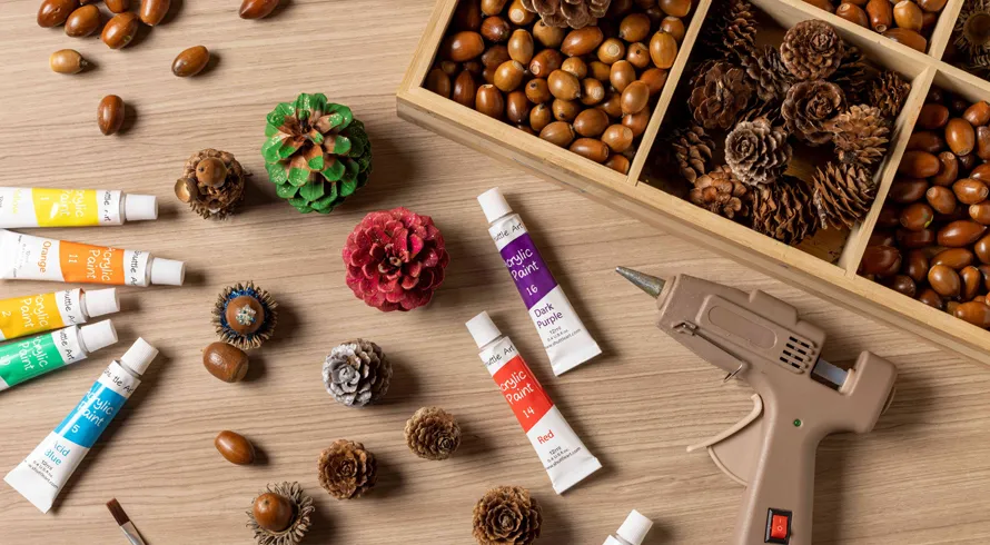 自然の中にある松ぼっくりやどんぐりなどからイメージを膨らませて、その形や素材を生かしたモノを作るネイチャークラフト体験。