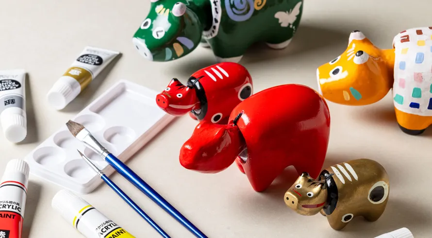 その伝統を受け継ぎながら、自分だけの赤べこを描いてみましょう!