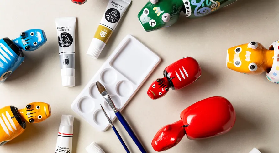 会津の伝統 赤べこ絵付け体験。