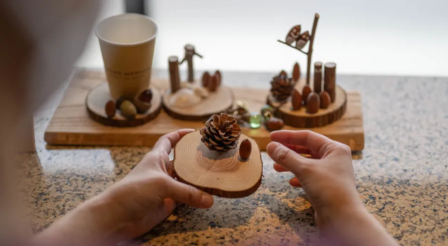 剪定材やどんぐり、貝殻を使って、木工クラフトやフォトフレームなどのオリジナル作品づくりを楽しめます。この土地ならではの特別な体験を。