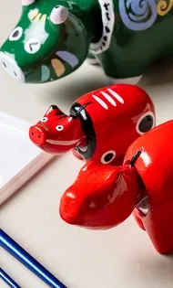会津の郷土玩具であり、厄除けのお守りや縁起物として広く知られる「赤べこ」。