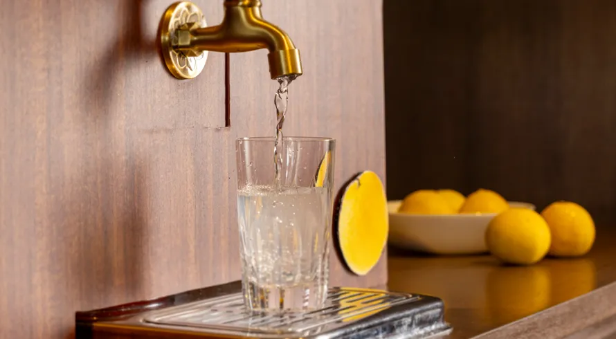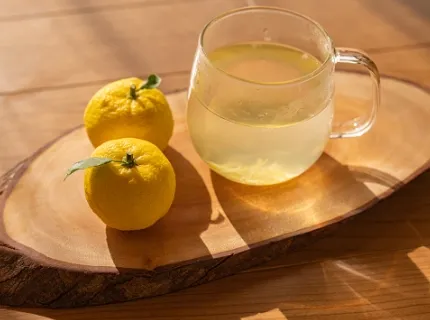 蛇口をひねると、爽やかな柚子ドリンクが出てくるユニークな体験。