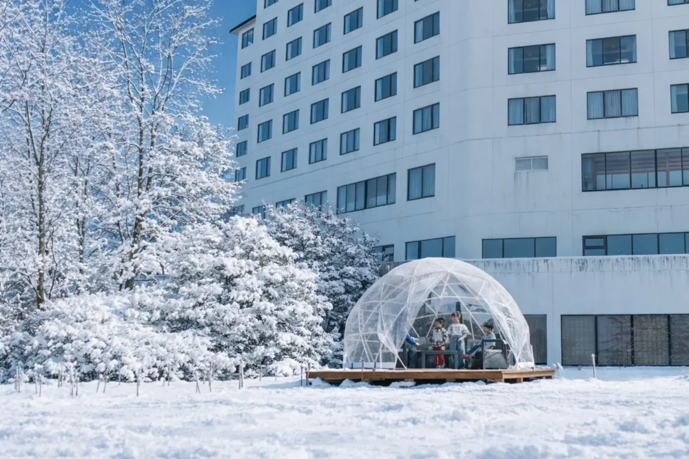 日本海と大山の雄大な自然に囲まれたリゾートホテル「メルキュール鳥取大山リゾート&スパ」(所在地:鳥取県西伯郡伯耆町/総支配人:大城 将也)は、冬季限定でホテル敷地内に雪遊びを楽しめる「スノーキッズパーク」をオープンします。そり遊びや雪合戦に使えるアイテムも無料で貸し出すため、移動不要、手ぶらで来館してもすぐに雪遊びを楽しめるのが特徴です。期間中は、かまくらをイメージしたドームテントを設置し、雪遊びの合間の休憩や写真撮影のスペースとして利用できます。さらに、雪で作ったアートを撮影して参加するフォトコンテストのほか、手作りの紙ランタンによる雪原のライトアップや、大山にまつわる謎解き宝探しなど、家族全員で楽しめる冬ならではの体験型アクティビティを用意しました。