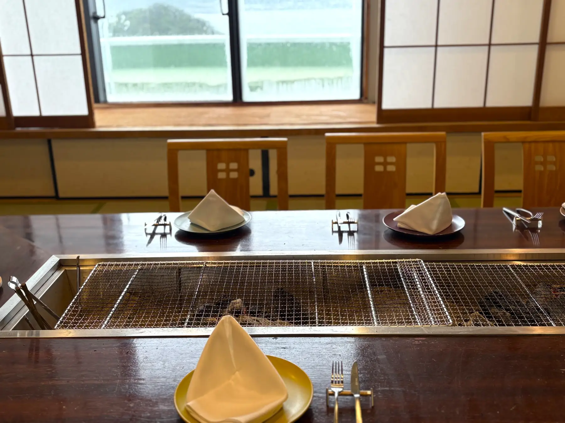 足を伸ばしてくつろげるお座敷(掘りごたつ)スタイルの個室空間で、和歌山県産ブランド牛「熊野牛」を主役にしたBBQを楽しめる宿泊プランです。