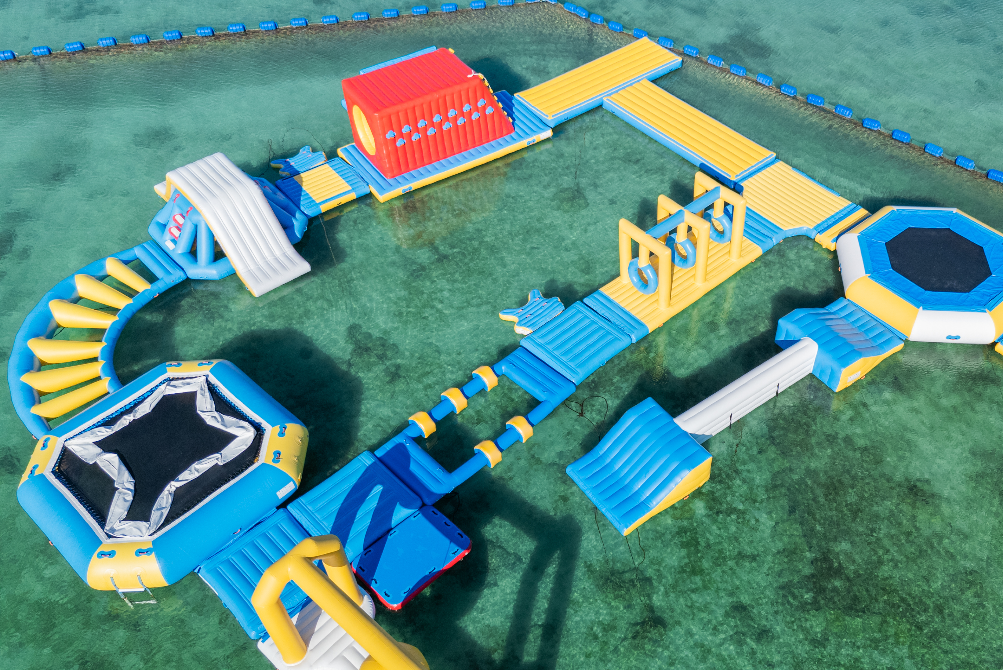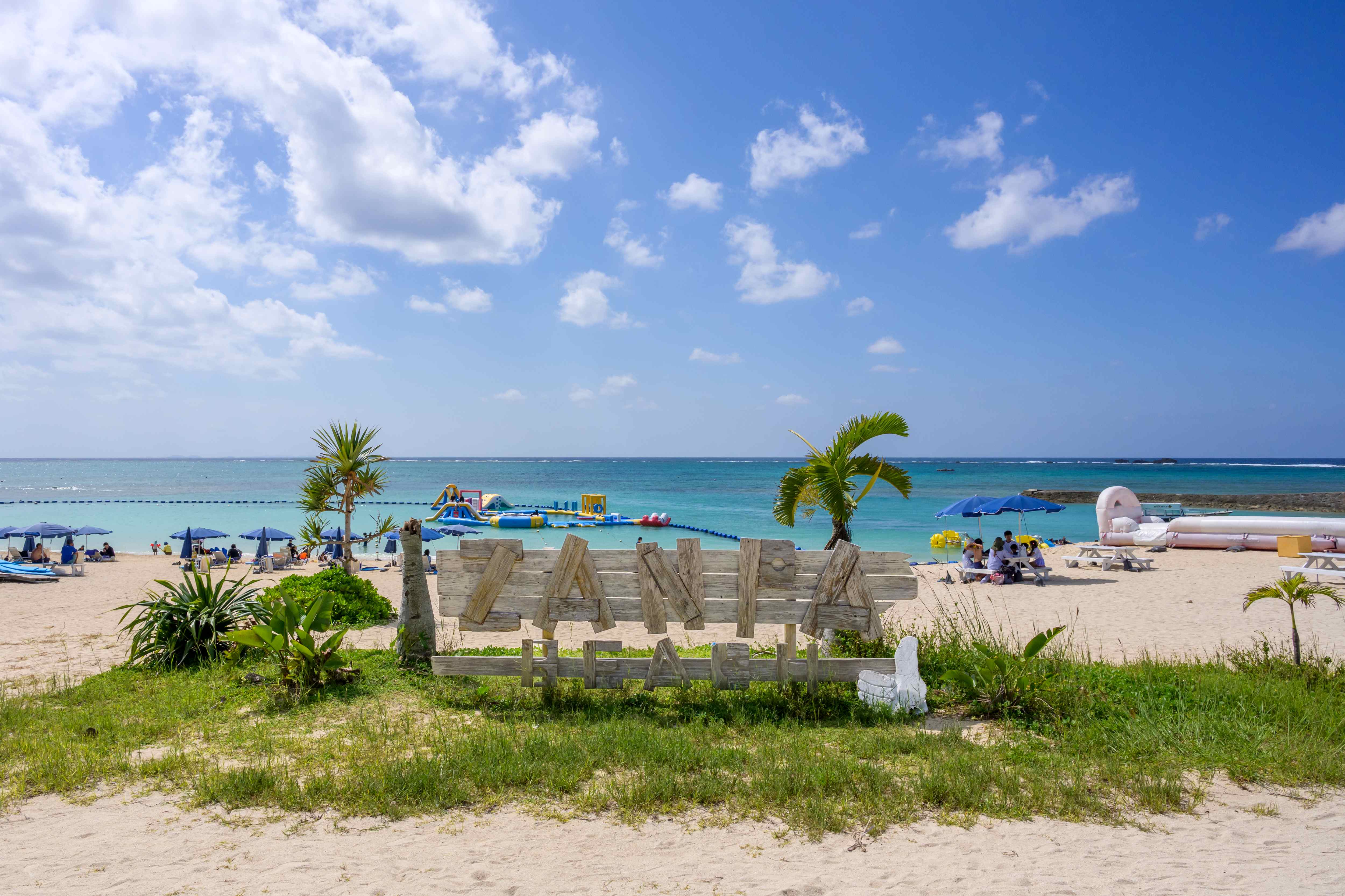 - 海面に浮かんだ遊具に、子どもも大人も夢中になること間違いなしの「ざんぱウォーターアスレチック」