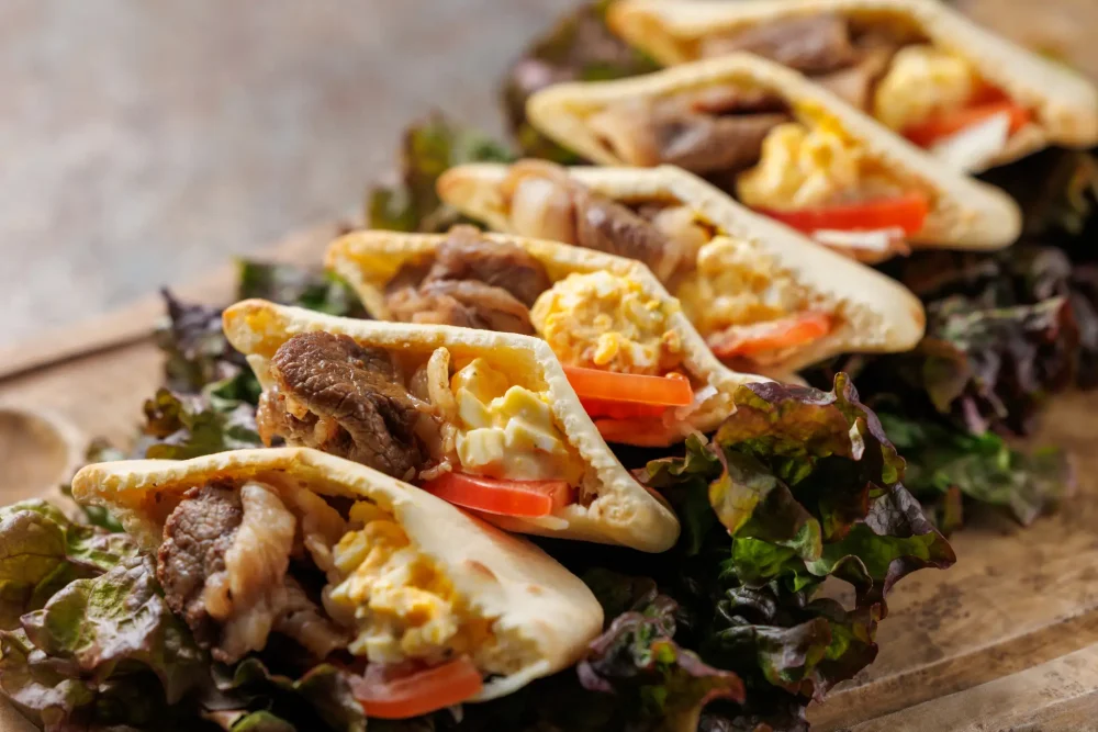 和牛を使った「ケバブサンド」をライブキッチンから提供します。大山むらさき醤油で漬け込み鉄板で焼いた熱々の和牛や野菜、卵をピタパンにサンド。旨味が染み込み濃厚な味わいの和牛と、トマトや玉ねぎのさっぱりとした味わいがマッチして、いくつでも食べられる美味しさです。