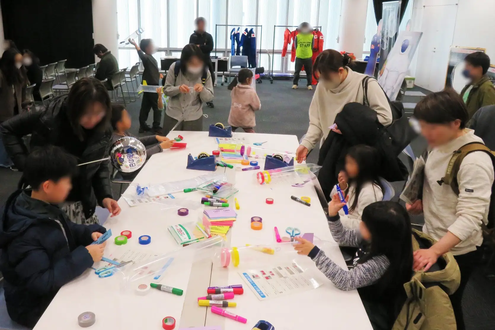 - ロケットづくりのワークショップ(写真は雨天時の傘袋を使ったロケットづくり)