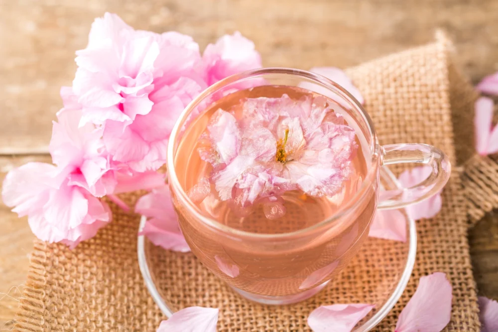 ラウンジでは春の期間限定で、ほんのり桜が香る「桜茶」と、やさしい甘みの「桜リキュール」「桜シロップ」をご用意しました。