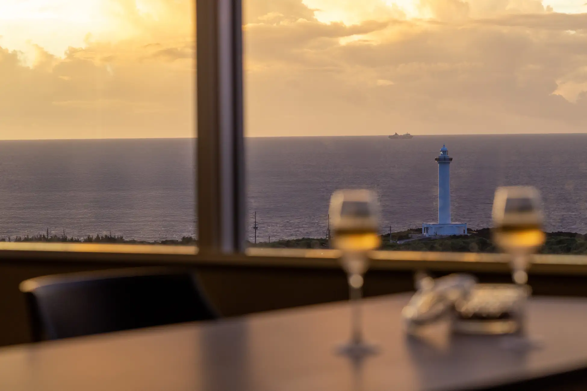 スイーツプレートは、夜に向けて少しずつ変わる空の色や、残波の海を黄金に染めながら水平線に沈む夕陽を眺めることができる時間に提供。非日常の絶景を眺めながら、大切な人とのひと時を紡ぐ宿泊プランです。