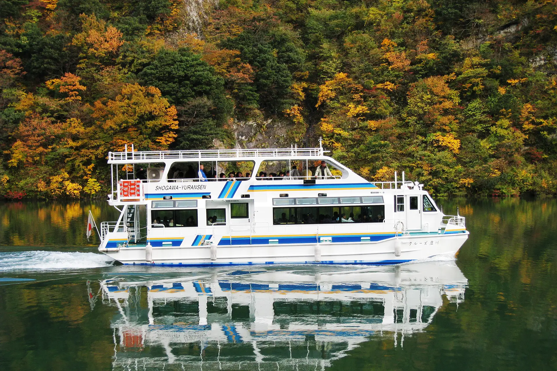 四季折々の風景を楽しめる庄川峡を遊覧船で巡るアクティビティです。秋には山肌が色づく美しい紅葉やエメラルドグリーンの川面のきらめきなど、雄大な峡谷美が目の前に広がります。ゆったりと流れる癒しの時間、自然が魅せる神秘の水上散歩を楽しめます。