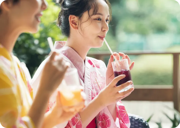 온천이나 목욕탕에서 느긋하게 치유된 후, 온천 라운지에서 올인클루시브의 음료를 즐기면서 이야기한다.