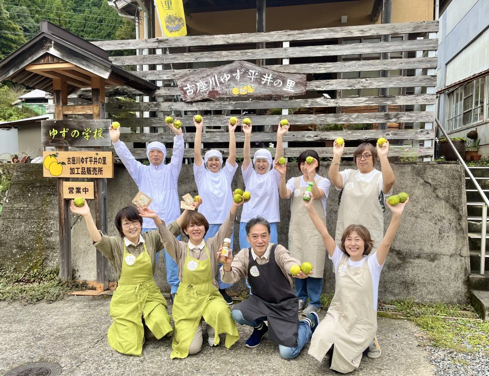 「유자노사토」라고 불리는 후루자와가와초 히라이 지구(와카야마현)에 있는 「고자가와 유자 히라이의 마을」의 여러분