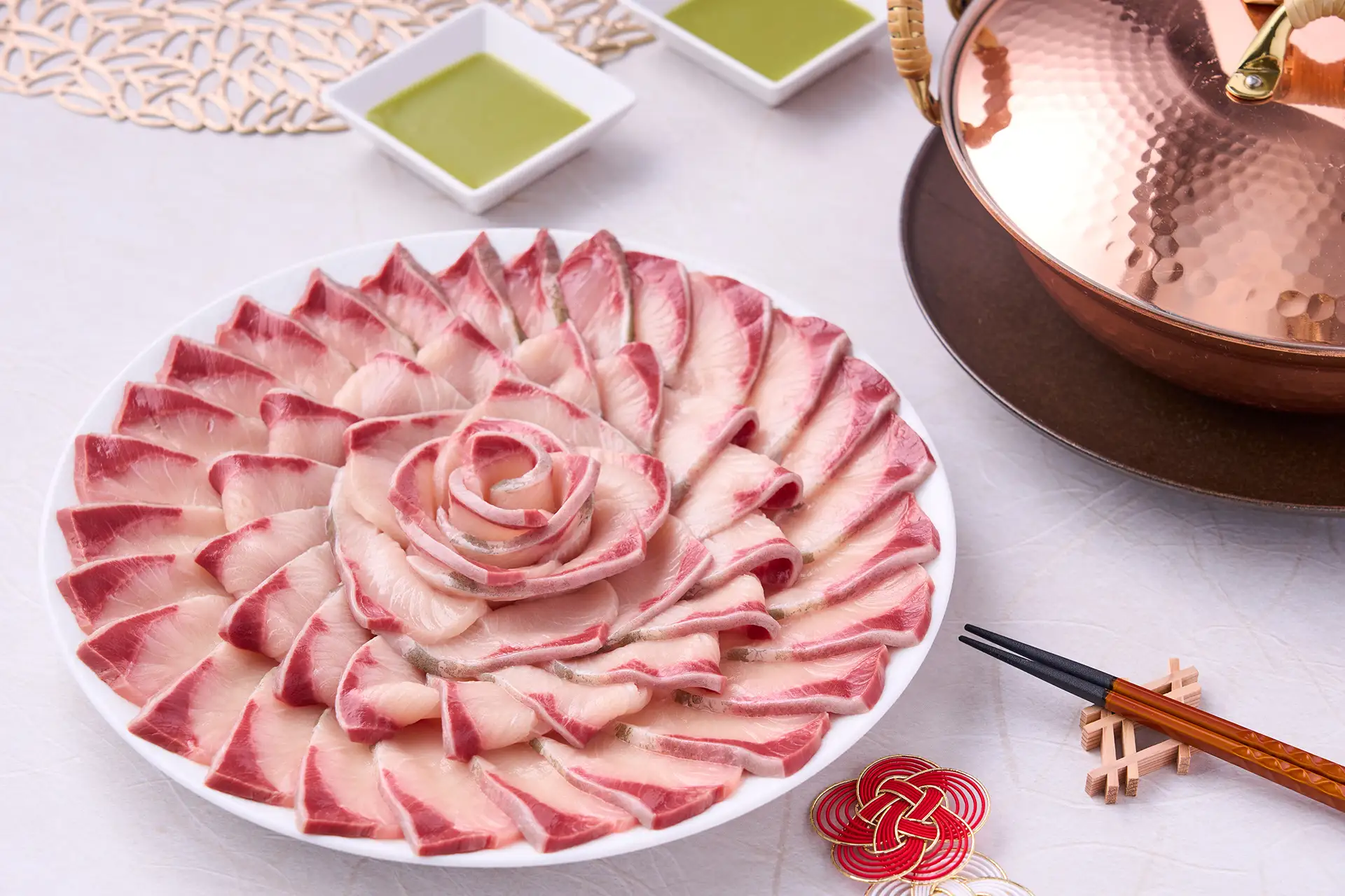 把富山縣產的鰤魚鑽進海帶湯裡,勒緊身體把美味關在了一起。恰到好處地去除脂肪,使其易於食用。
