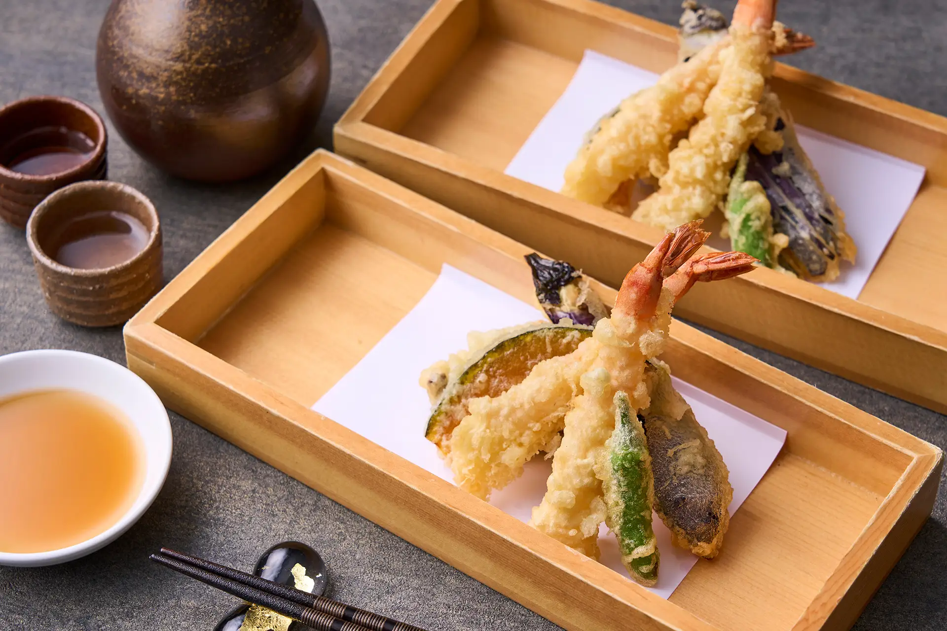 現場廚房裡工匠在眼前炸出的天婦羅,熱乎乎乎地鬆脆。您可以品嘗到口中瀰漫的幸福味道。