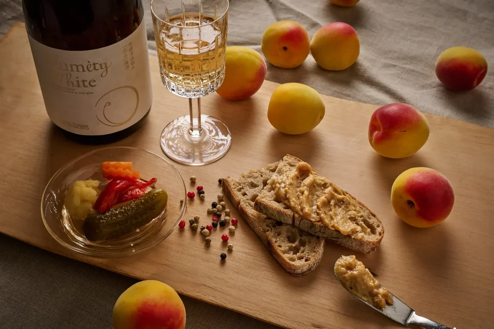 使用位於和歌山縣有田川町的高垣酒造的吟釀酒。吟釀的香味和南高梅的酸味和果實感平衡得很協調,其特徵是用葡萄酒杯讓人想享受的清爽果味。