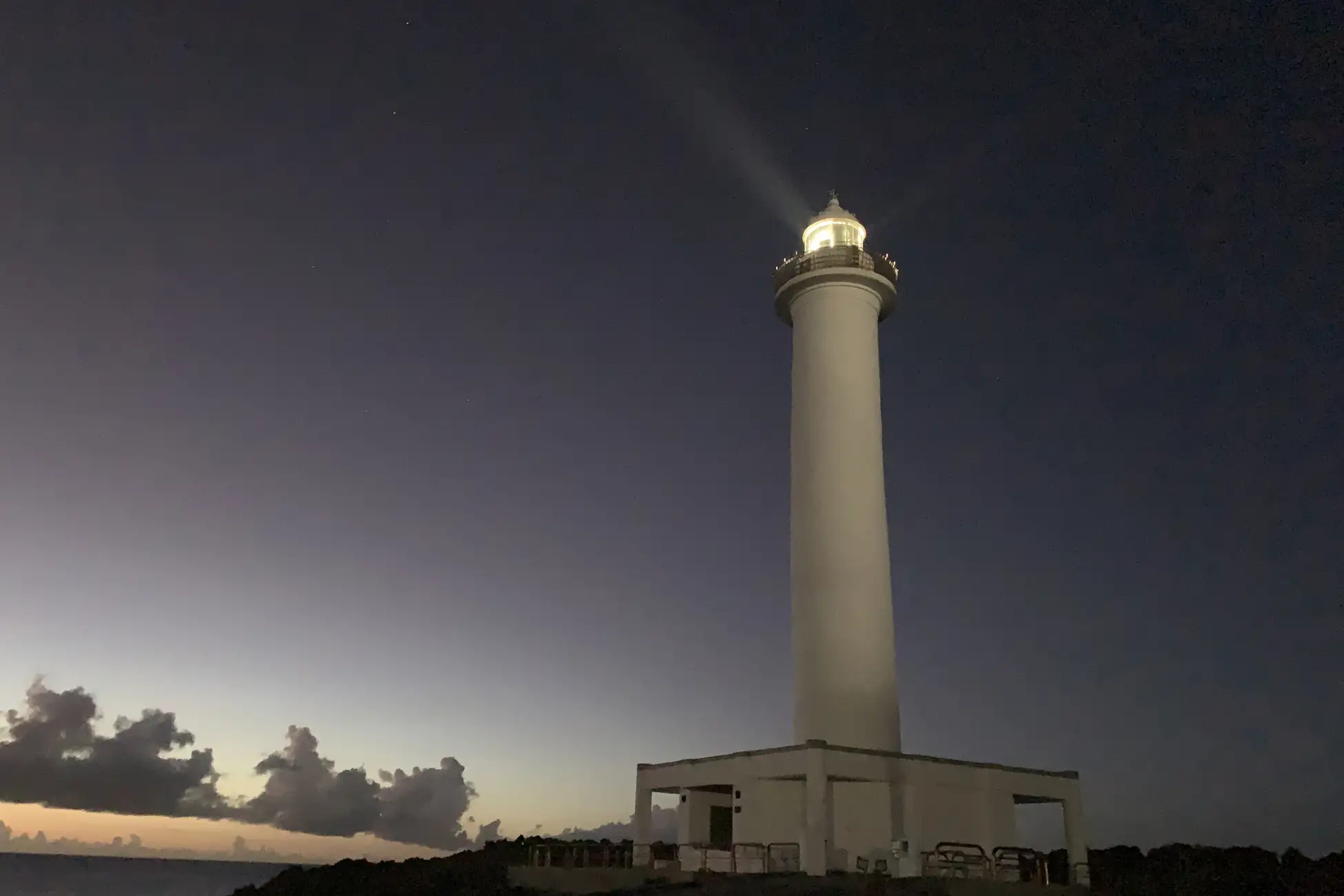 在那前面蔓延的風景,一天裡沒有一樣的東西。在晴天的天空下,既有平靜的大海廣闊的日子,也有波浪衝擊岩石的荒蕪風景的日子。可以看到海龜在透明度高的大海中悠閒地游泳的樣子,也可以看到從冬天到春天的座頭鯨回遊的樣子。這座燈塔能近距離感受到自然的變化、沖繩的原風景,對我來說是工作場所,也是心靈治愈的重要場所。